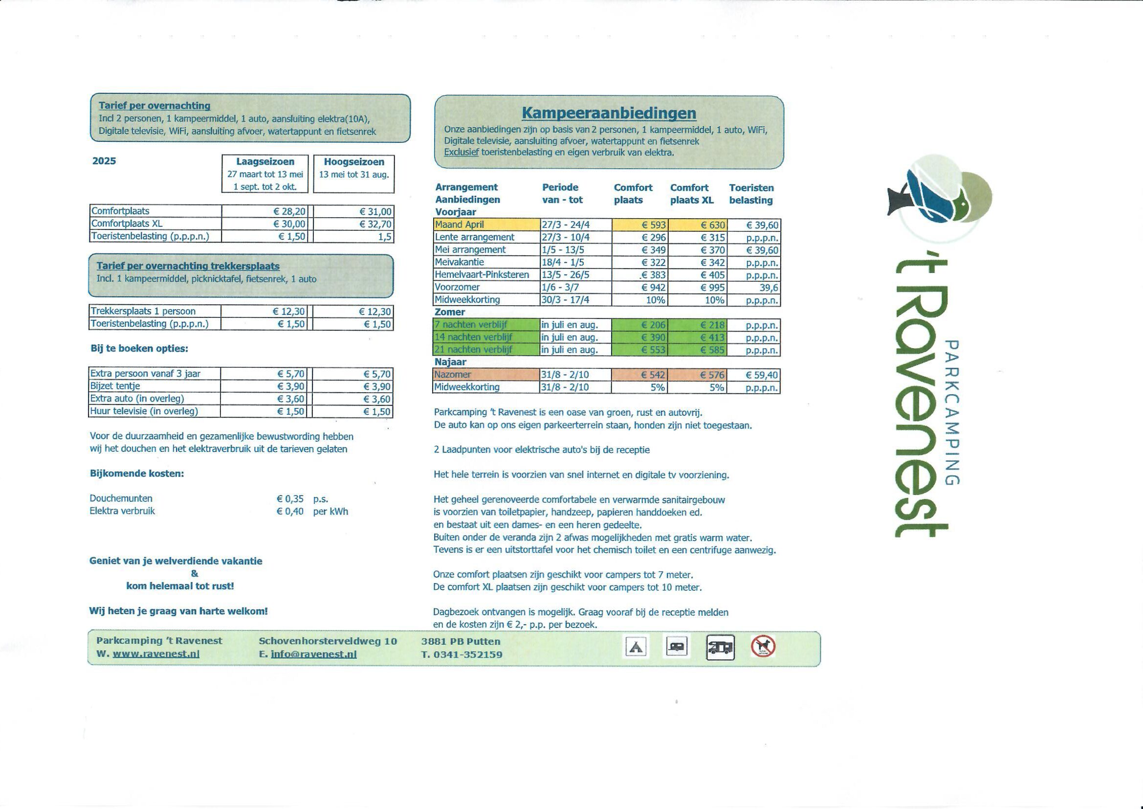 Onderstaand vind je onze voordelige arrangementen en kampeertarieven: